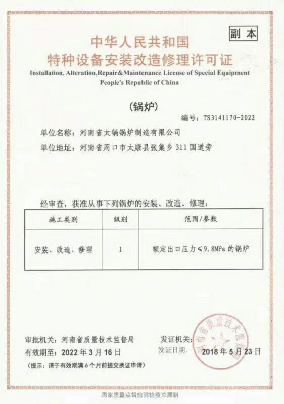 歡迎來(lái)到河南省太鍋鍋爐制造有限公司官網(wǎng)! 銷售熱線:15224972999